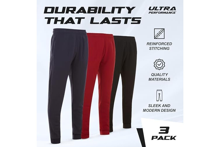 Ultra Performance 3 Pack Mens Joggers Mens Athletic Sweatpants with Pockets for Men, Small - 3X