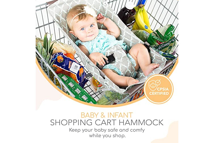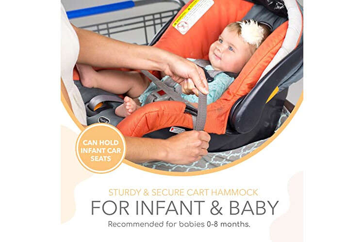 Comfortable & Durable - Made from 97% cotton and baby-safe fabric, this baby shopping hammock is cozy for your little one. Its double-layer upholstery fabric is durable and can be easily washed. This shopping cart seat is a great way to let your little one relax in comfort while you shop.