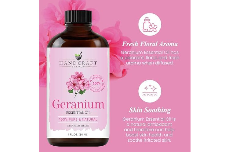Handcraft Blends Geranium Essential Oil – 1 Fl Oz – 100% Pure and Natural – Premium Grade Essential Oil for Diffuser and Aromatherapy, Skin, Massage, Candle and Soap Making Fragrance