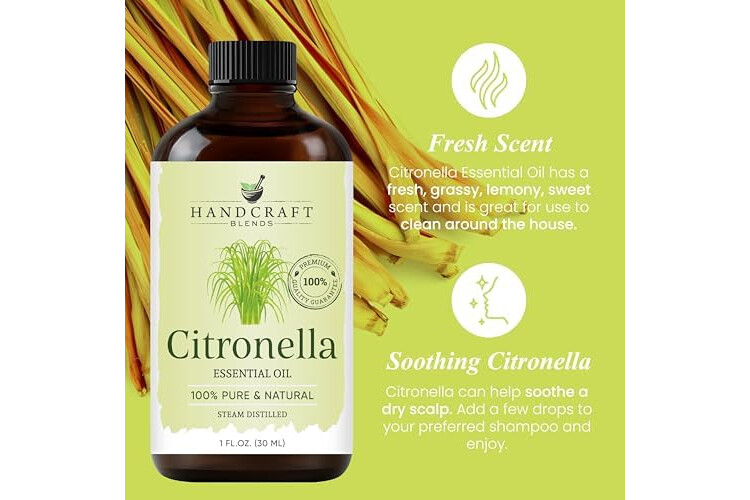 Handcraft Blends Citronella Essential Oil – 1 Fl Oz – 100% Pure and Natural – Premium Grade Essential Oil for Diffuser and Aromatherapy, Skin, Massage, Candle and Soap Making Fragrance