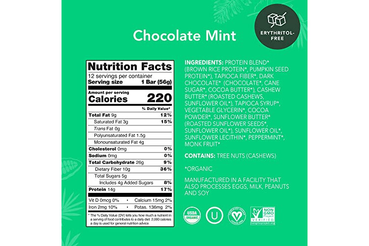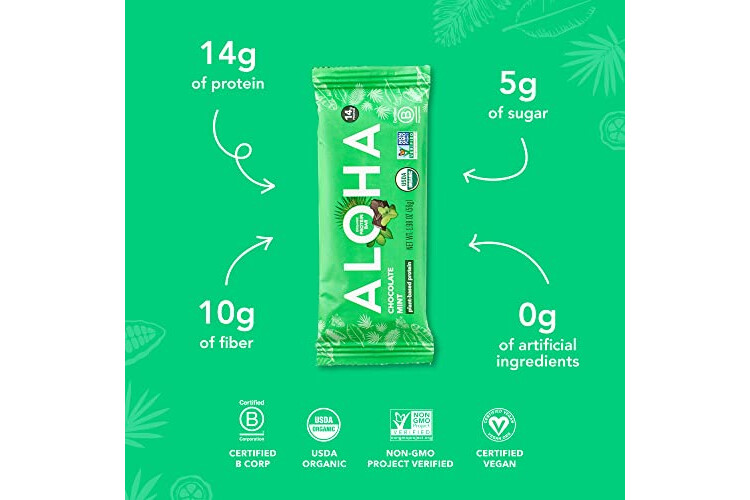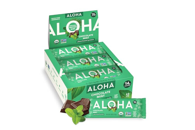 ALOHA Organic Plant Based Protein Bars, Chocolate Mint, 1.98 Oz (Pack of 12)