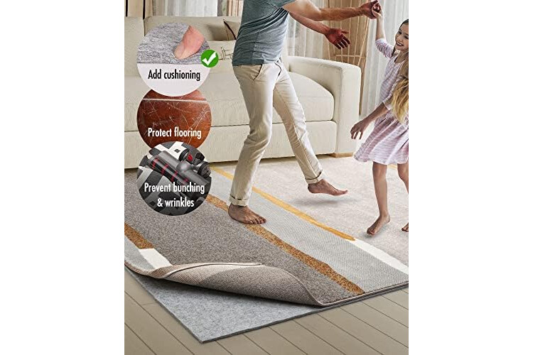 Floor Protector - Poor quality rugs and rug pads can scratch your floors and damage the finish.They could also transfer the color to the flooring, leading to discoloration or staining.Our high quality cushioned rug pads can protect your flooring and prevent grime and dirt from accumulating under the rug.