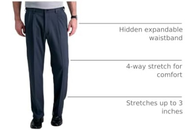Haggar Men's Cool 18 Pro Classic Fit Pleat Front Hidden Expandable Waist Pant- Regular and Big & Tall Sizes