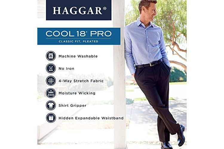 Haggar Men's Cool 18 Pro Classic Fit Pleat Front Hidden Expandable Waist Pant- Regular and Big & Tall Sizes