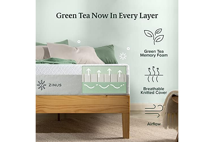 ZINUS 12 Inch Green Tea Luxe Memory Foam Mattress, Queen, Pressure Relieving, CertiPUR-US Certified, Mattress in A Box, All-New, Made in USA