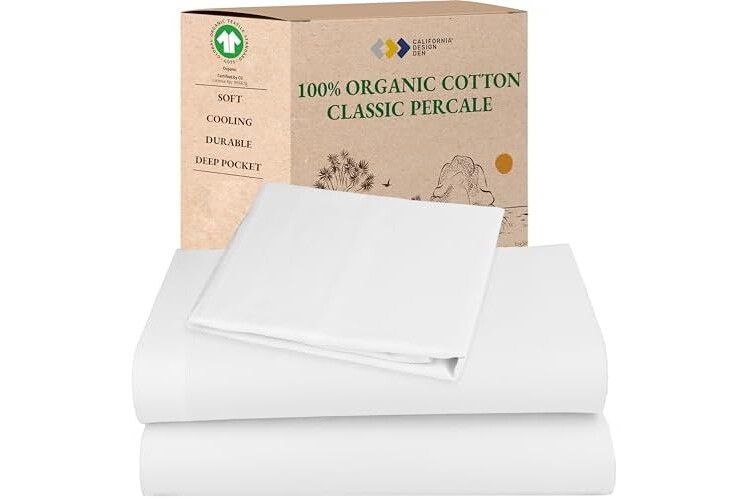 California Design Den Twin Sheets Set - Soft 100% Organic Cotton Sheets with Deep Pockets, Crisp Percale, Breathable and Durable Bedding Set - White
