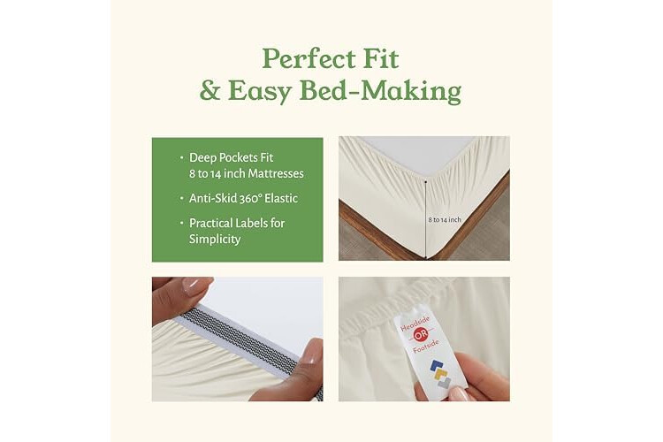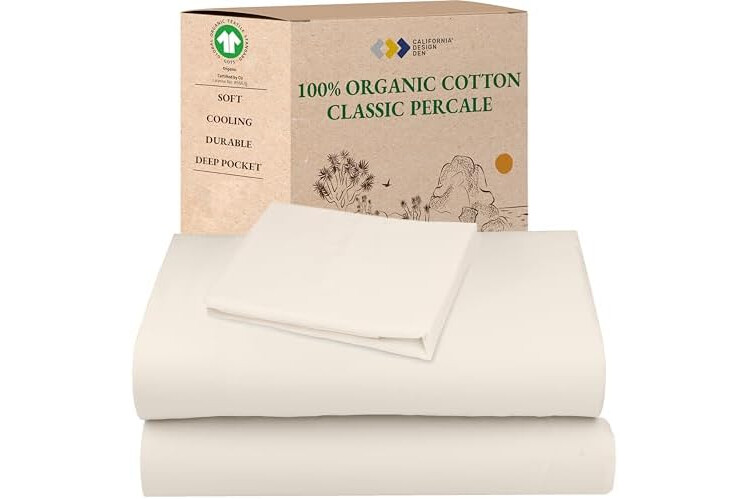 California Design Den Twin Bed Sheets Set - Soft 100% Organic Sheets with Deep Pockets, Crisp Cotton Percale, Breathable and Durable Bedding Set - Ivory (Cream Tone)