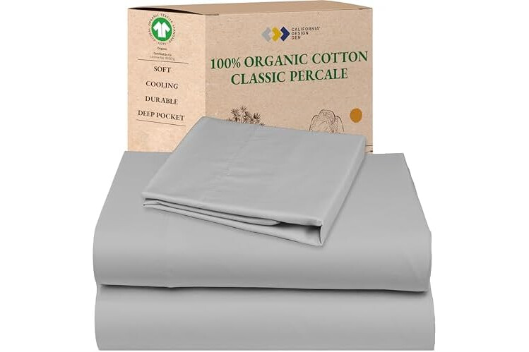 California Design Den Twin Sheet Set - Soft 100% Organic Cotton Bed Sheets with Deep Pockets, Crisp Percale, Breathable and Durable Bedding Set - Light Grey