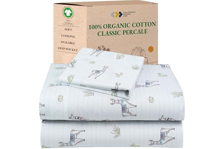 California Design Den Printed Twin Sheet Set Cotton, 100% Organic Cotton Percale Sheets, Deep Pocket Twin Sheets & Pillowcase Set - Llama