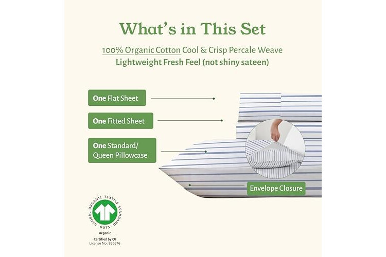 LIGHTWEIGHT ORGANIC COTTON PERCALE COMFORT: Rest easy knowing our organic cotton percale sheets are crafted from 100% org...