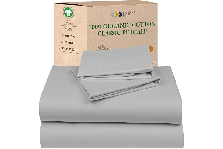 California Design Den Queen Bed Sheets - Soft 100% Organic Cotton Sheets with Deep Pockets, Crisp Percale, Breathable and Durable Bedding Set - Light Grey