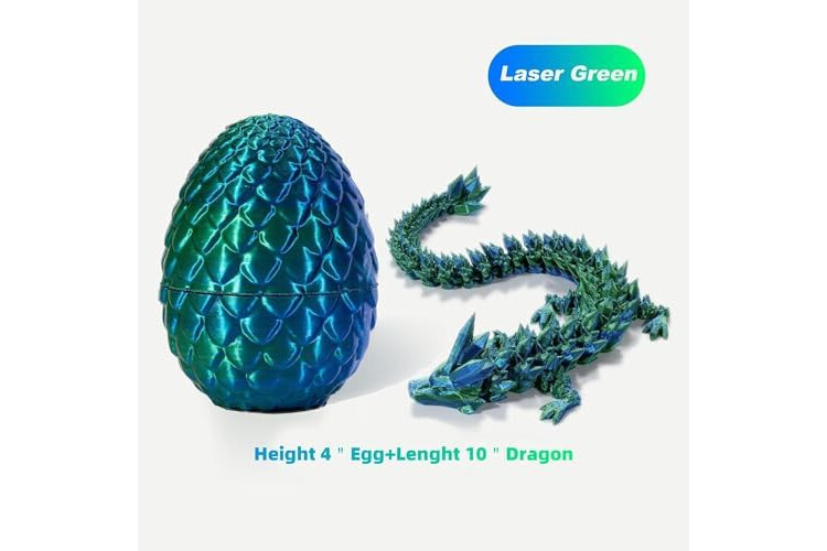 3D Printed Dragon with Surprise Egg, Articulated Crystal Dragon in Egg, Executive Dragon Fidget Desk Toys, Decorative Egg Gifts for Boys Kids Home Decor(Green)