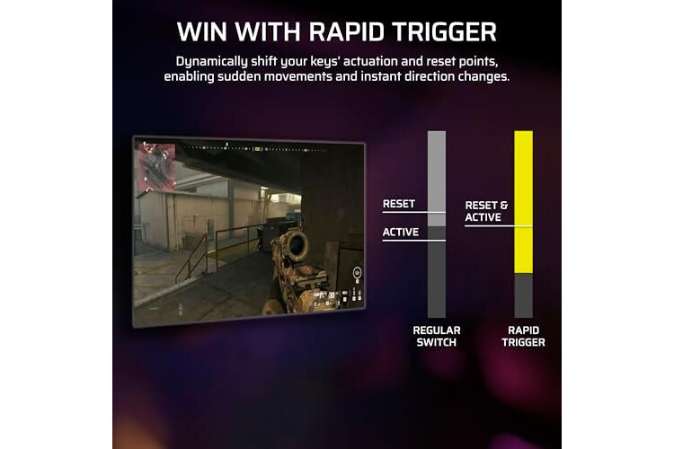 Rapid Trigger Advantage: Rapid Trigger dynamically changes your keys’ actuation and reset points, so you can move and reset your movements faster than ever