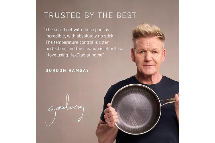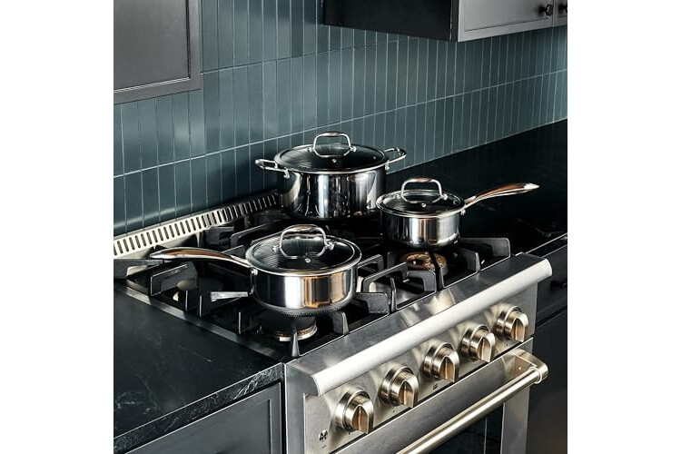 Tri-ply construction with an aluminum core for quicker even heating, it’s safe to use on any home cooktop or stovetop, including induction. HexClad is metal utensil-safe, dishwasher-friendly, and oven-safe up to 900°F. (Tempered glass lids are oven-safe up to 400°F, while stainless steel lids are oven-safe up to 900°F.)