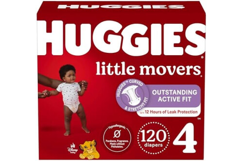 Huggies Size 4 Diapers, Little Movers Baby Diapers, Size 4 (22-37 lbs), 120 Count, Packaging May Vary