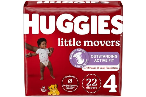 Huggies Size 4 Diapers, Little Movers Baby Diapers, Size 4 (22-37 lbs), 22 Count, Packaging May Vary