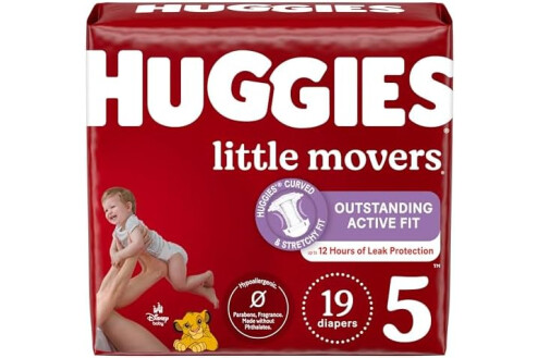 Huggies Size 5 Diapers, Little Movers Baby Diapers, Size 5 (27+ lbs), 19 Count, Packaging May Vary