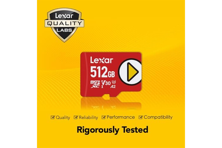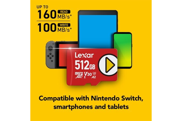 Lexar 512GB PLAY micro SD Card, UHS-I, C10, U3, V30, A2, Full HD, 4K, Up To 160/100 MB/s microSDXC Memory Card, Expanded Storage for Nintendo-Switch 1, Gaming, Smartphones, Tablets (LMSPLAY512G-BNNNU)