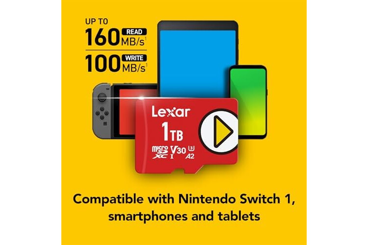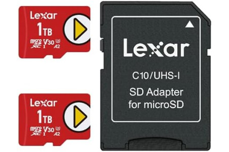 Lexar 1TB (2-Pack) Play Micro SD Card w/SD Adapter, UHS-I, C10, U3, V30, A2, Full HD, Up to 160/100 MB/s, Expanded Storage for Nintendo-Switch 1, Gaming, Smartphones, Tablets (LMSPLAY001T-B2ANU)