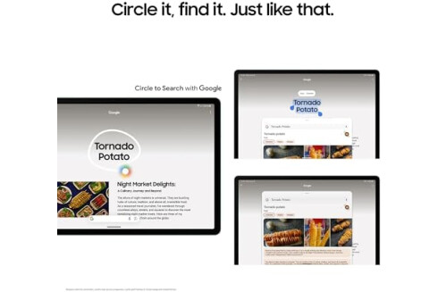 CIRCLE IT, SEARCH IT, FIND IT. JUST LIKE THAT: Search for anything you see on your Galaxy Tab S9 FE+ Series screen simply by circling it. From discovering where to buy those awesome shoes to getting a recipe based on a dish your friend just posted, find answers fast using Circle to Search with Google.¹