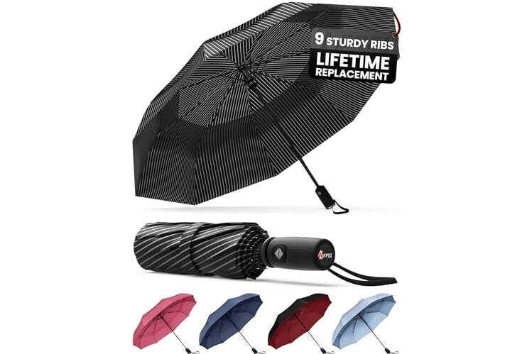 REPEL Windproof Travel Umbrella - Compact & Withstands Winds up to 85MPH , Strongest Premium Auto Folding Umbrella for Rain and Sun - Durable, Light & Portable for Women & Men , Fits Backpack & Cars