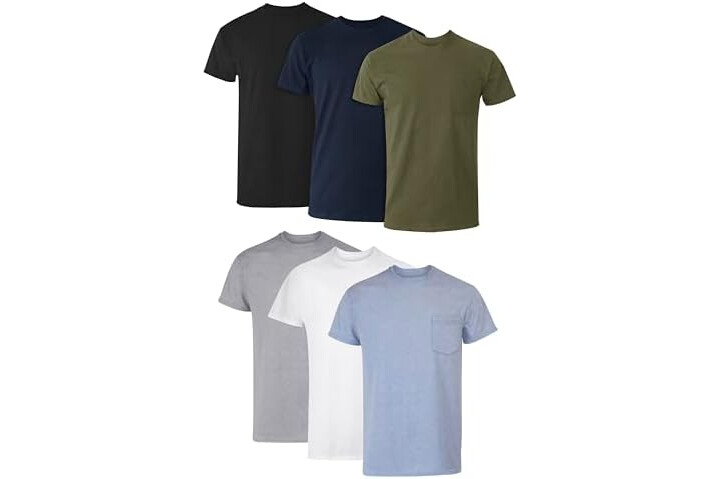 Hanes Men's Pocket T-Shirt Pack, 6-Pack, Cool & Breathable Cotton Tees, Stay-Tucked Undershirts for Men