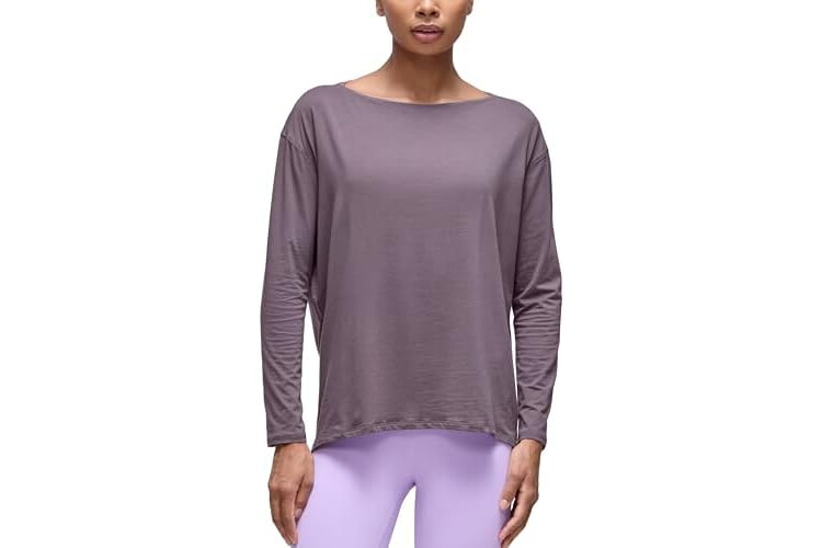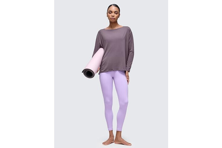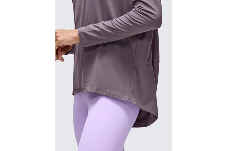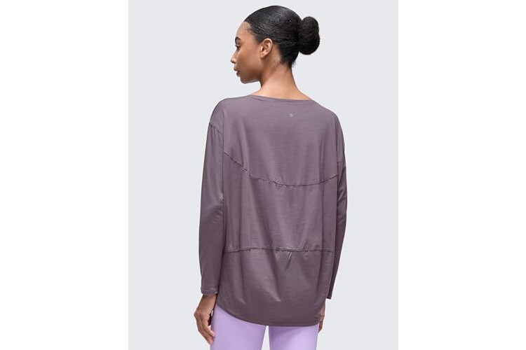 CRZ YOGA Pima Cotton Boat Neck Long Sleeve Shirts for Women - Workout Athletic Yoga Casual Tops Loose Fit Fall T-Shirts