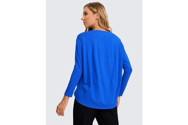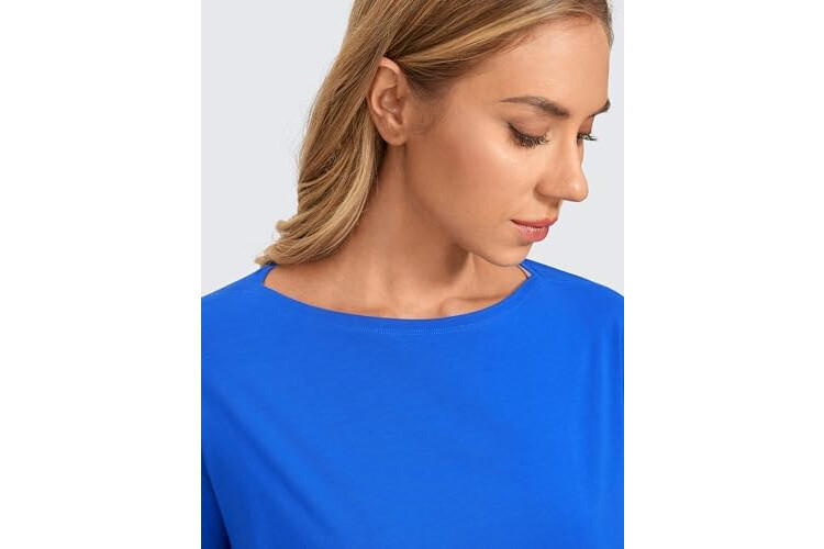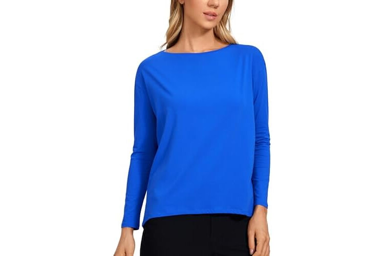 CRZ YOGA Pima Cotton Boat Neck Long Sleeve Shirts for Women - Workout Athletic Yoga Casual Tops Loose Fit Fall T-Shirts