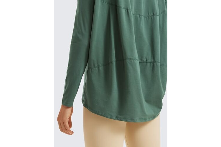 CRZ YOGA Pima Cotton Boat Neck Long Sleeve Shirts for Women - Workout Athletic Yoga Casual Tops Loose Fit Fall T-Shirts