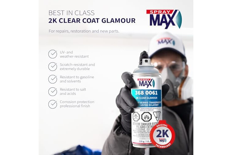 SprayMax 2K Glamour High Gloss Clear Coat | 2K Automotive Clear Coat Spray Paint | High Gloss Finishing Spray | UV-Resistant, Scratch & Gasoline Resistant | Professional Grade 11.8 oz