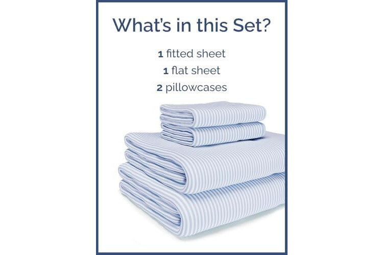 Kids Queen Size Blue Striped Sheets - 4 Piece Blue Stripe Microfiber Sheet Set - Nautical Themed Bedding - Soft, Cozy, Breathable, Machine Washable - Sky Blue Bed Set for Boys, Girls, Teens & Toddlers