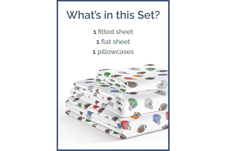 Football Bed Sheets - 3 Piece American Football Bed Sheets - Twin Size Sports Bedding for Kids - Ultra-Soft & Cozy - Breathable & Machine Washable - Helmet Bed Set for Boys, Girls, Teens and Toddlers