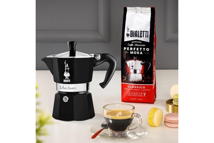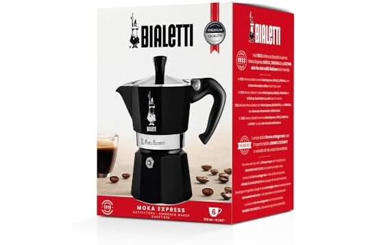 Bialetti Moka Express Iconic Italian Stovetop Espresso Maker (Black, 6 Cups)