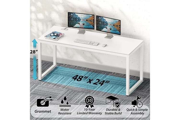 SHW 48-Inch Commercial-Grade Office Computer Desk, White