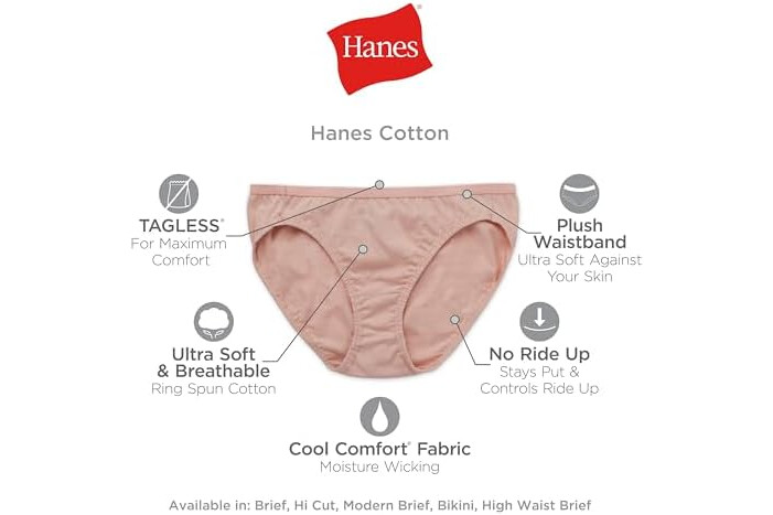 Hanes Women's Underwear Briefs Pack, 10-Pack, Cotton Panties for Women, Moisture-Wicking, Full Coverage