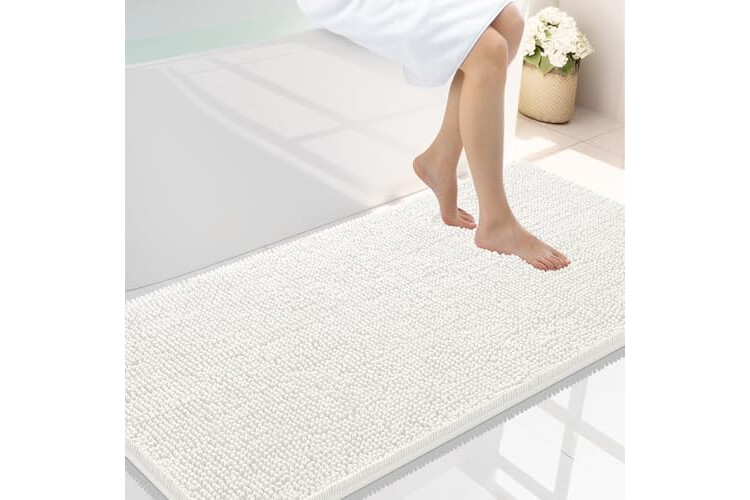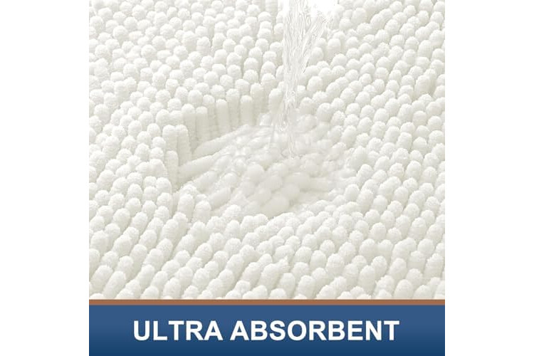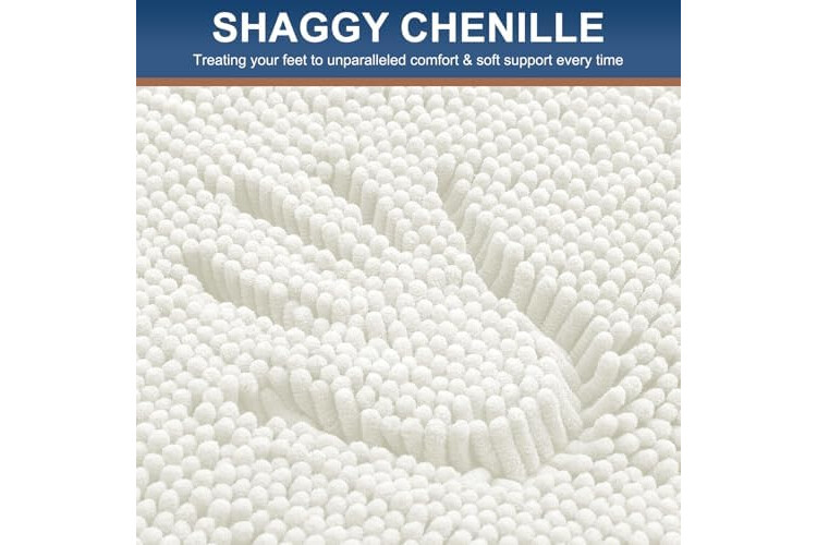 Smiry Luxury Chenille Bathroom Rugs 44x24, Extra Soft and Absorbent Shaggy Bath Mat, Machine Washable, Non-Slip Plush Carpet Runner for Tub, Shower, and Floor, Home Decor Accessories, Ivory