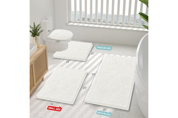 [Non-Slip Backing] Our bath rugs feature a non-slip backing made from good quality mesh PVC, providing a secure grip that avoid shifting and skidding. Important: Place on CLEAN DRY FLAT FLOOR ONLY to avoid slipping. Keep the rug's bottom dry at all times.