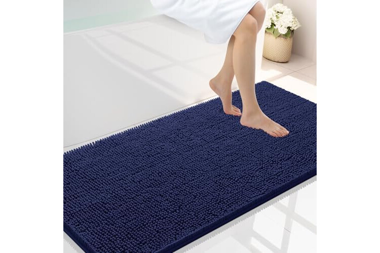 Smiry Luxury Chenille Bathroom Rugs 40x24, Extra Soft and Absorbent Shaggy Bath Mat, Machine Washable, Non-Slip Plush Carpet Runner for Tub, Shower, and Floor, Home Decor Accessories, Navy Blue