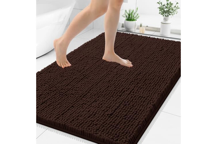 Smiry Luxury Chenille Bathroom Rugs 50x30, Extra Soft and Absorbent Shaggy Bath Mat, Machine Washable, Non-Slip Plush Carpet Runner for Tub, Shower, and Floor, Home Decor Accessories, Brown