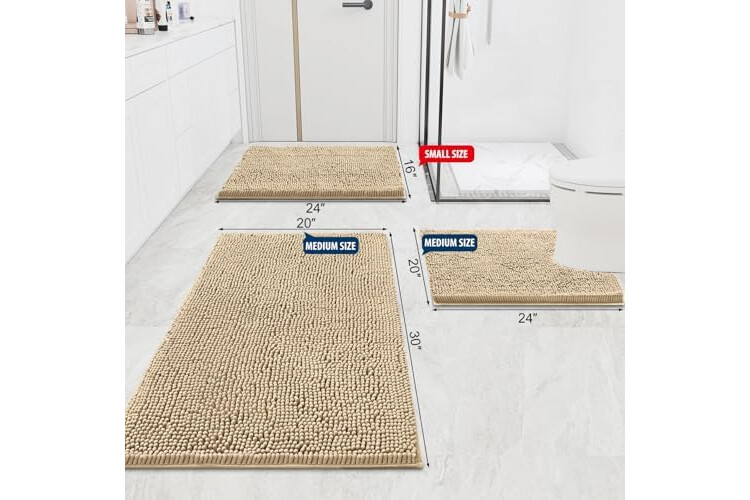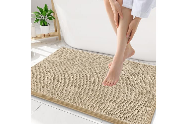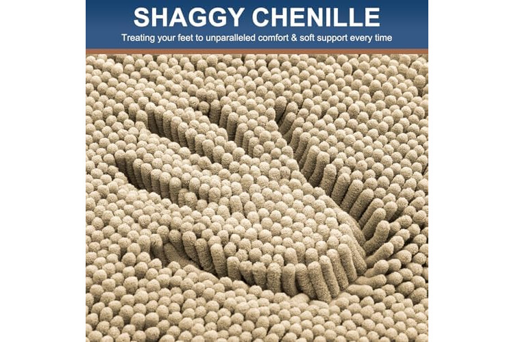 Smiry Luxury Chenille Bathroom Rugs 34x21, Extra Soft and Absorbent Shaggy Bath Mat, Machine Washable, Non-Slip Plush Carpet Runner for Tub, Shower, and Floor, Home Decor Accessories, Beige