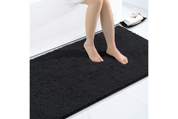 Smiry Luxury Chenille Bathroom Rugs 45x27, Extra Soft and Absorbent Shaggy Bath Mat, Machine Washable, Non-Slip Plush Carpet Runner for Tub, Shower, and Floor, Home Decor Accessories, Black
