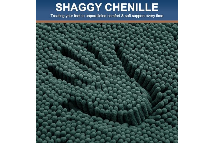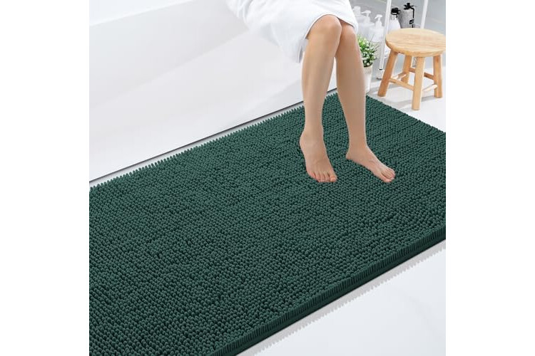 Smiry Luxury Chenille Bathroom Rugs 59x35, Extra Soft and Absorbent Shaggy Bath Mat, Machine Washable, Non-Slip Plush Carpet Runner for Tub, Shower, and Floor, Home Decor Accessories, Green