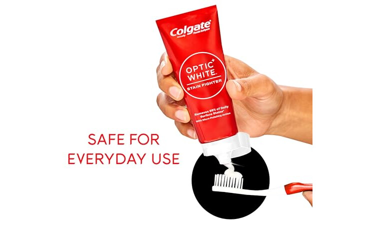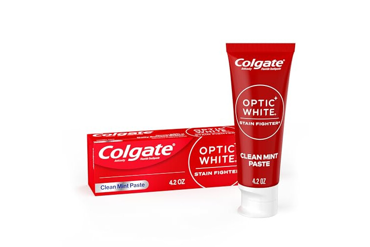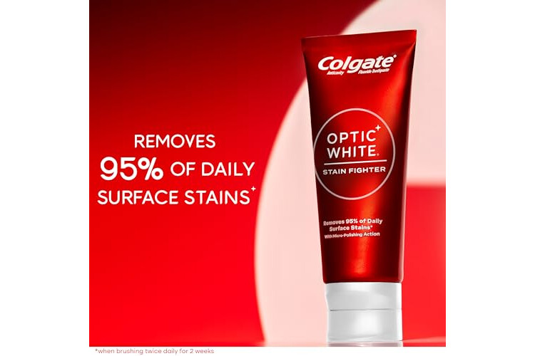• Includes four (4) 4.2 oz tubes of Colgate Optic White Stain Fighter Teeth Whitening Toothpaste, Anticavity Fluoride Toothpaste