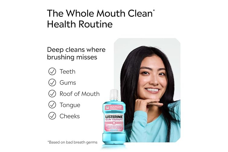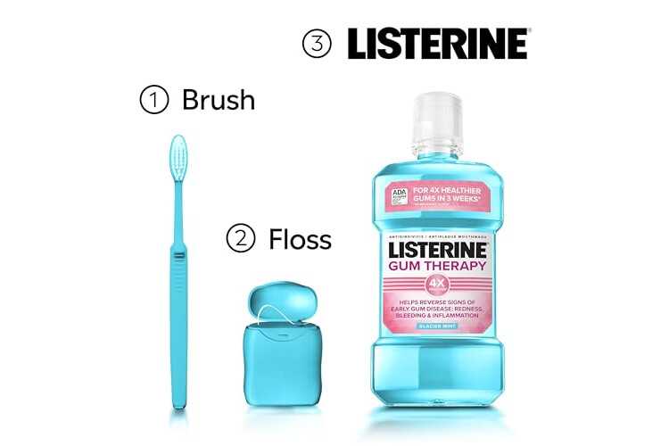 Listerine Gum Therapy Antiplaque & Anti-Gingivitis Mouthwash, ADA Accepted Oral Rinse Helps Reverse Early Gingivitis Signs Like Bleeding Gums, 4X Healthier Gums in 3 Weeks vs Brushing Alone, Mint, 1 L