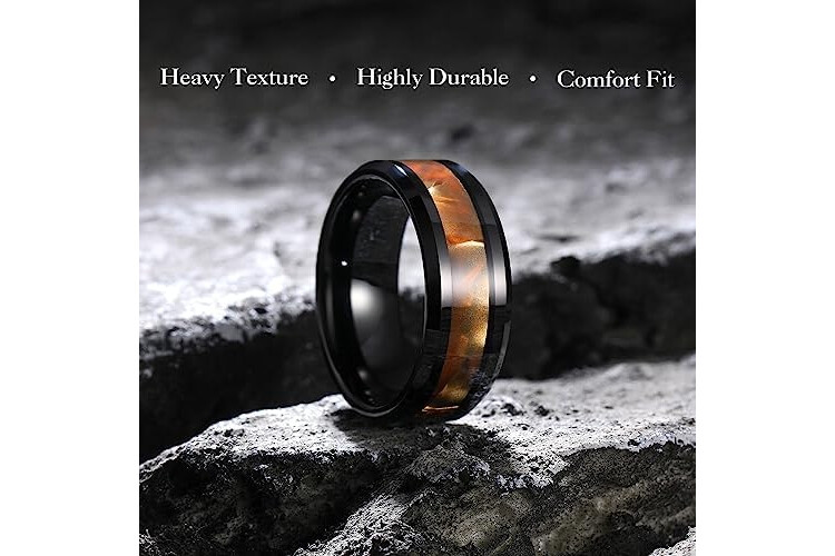 King Will Tungsten Carbide Wedding Band for Men - 8mm Black High Polished Inlay Green/Black Olive Shell Texture Patterns for Everyday Wear Comfort Fit