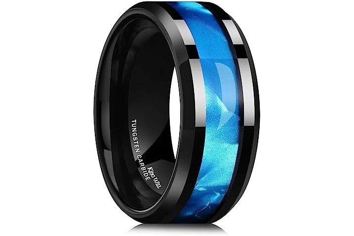 King Will Tungsten Carbide Wedding Band for Men - 8mm Black High Polished Inlay Green/Black Olive Shell Texture Patterns for Everyday Wear Comfort Fit