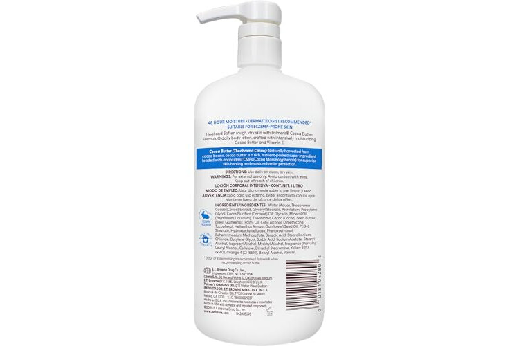 Palmer's Cocoa Butter Formula Daily Skin Therapy Body Lotion, 33.8 Oz Pump Bottle, Intensive Moisturizer for Dry and Eczema-Prone Skin, Enriched with Vitamin E, Helps Provide 48-Hour Deep Hydration