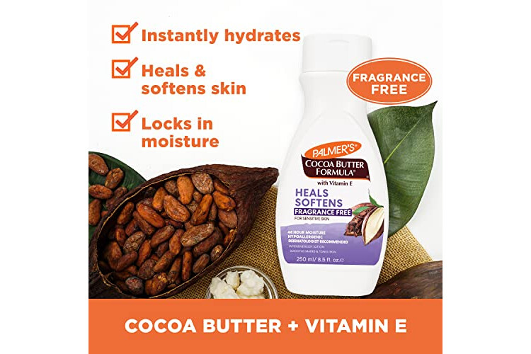 Deep Hydrating Body Lotion: This 48 hour cocoa butter moisturizing body lotion is fragrance free and provides deep, soothing hydration for all skin types, from normal to dry to eczema prone skin