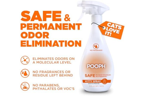 POOPH® Kitty Odor Eliminator – 32 fl oz Bottle – Proprietary Odor-Elimination Technology Works On-Contact – Cat Trees, Toys, Furniture, Bedding – NO Fragrances, NO Harsh Chemicals, Safe & Non-Toxic