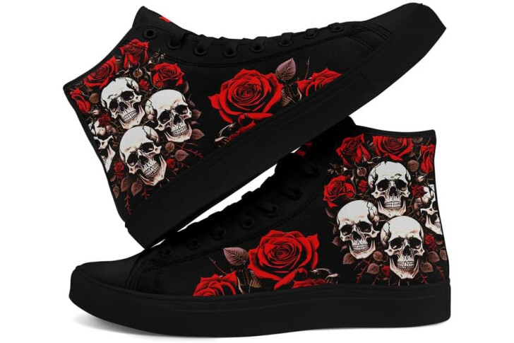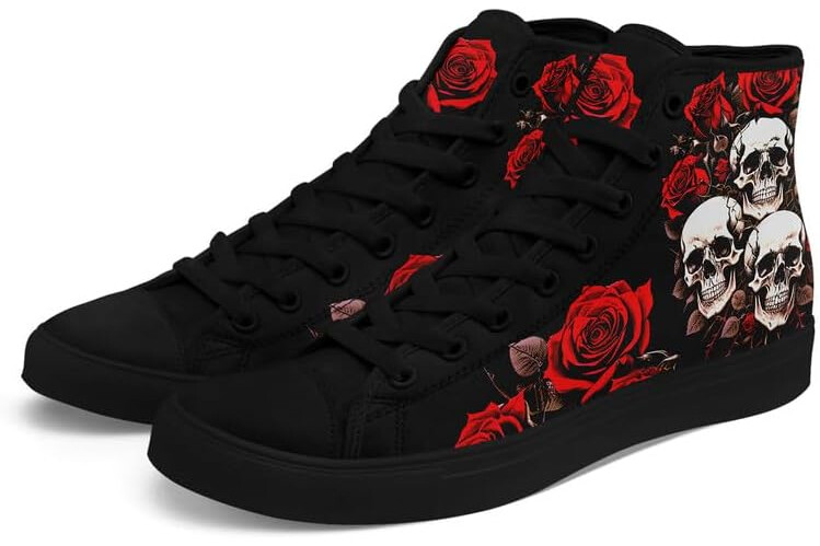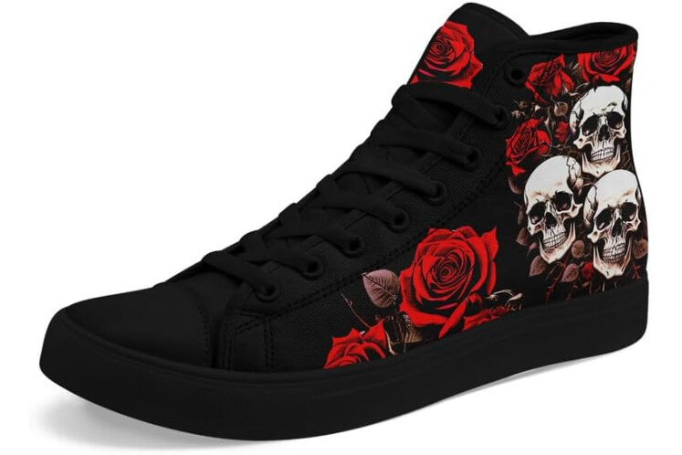 coolcustomize Skull High Tops Canvas Shoes for Men Women Classic Lace Up Gothic Graphic Fashion Sneaker Street Casual Canvas Sneakers